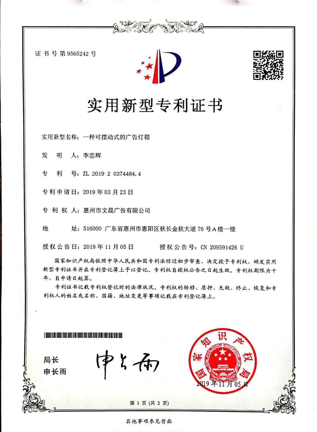 惠州市文晨燈箱科技有限公司,創(chuàng)建于2012年4月,坐落在惠州市惠陽區(qū)美麗的歷史文化名鎮(zhèn)秋長鎮(zhèn),毗鄰革命先烈葉挺將軍故居。惠州市文晨燈箱科技有限公司創(chuàng)建以來,一直秉著客戶至上!品質為先!服務為重的經(jīng)營理念。嚴格要求自我!以客戶的標準不斷完善產(chǎn)品的質量,追求更好的服務客戶...[了解更多]